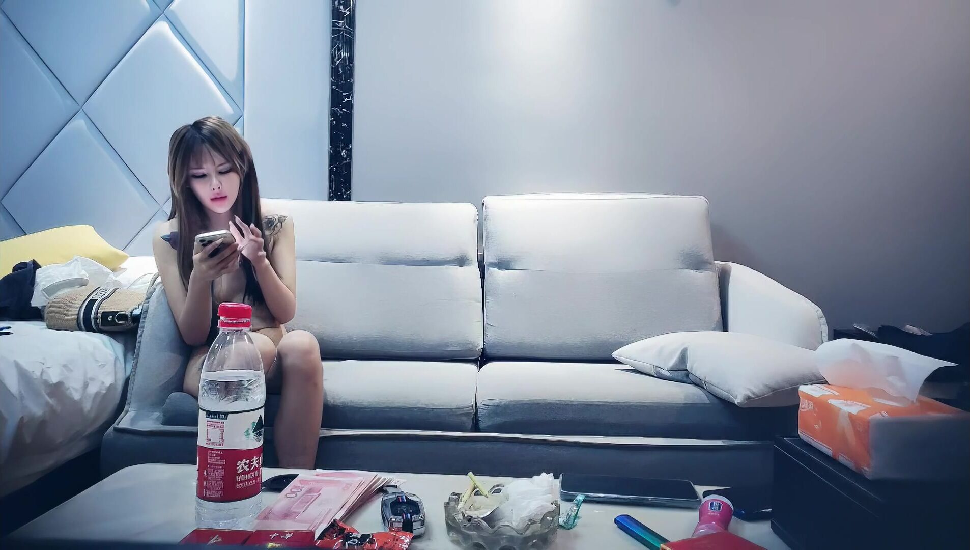 【赵总寻花】网红脸纹身小姐姐,换上情趣水手服黑丝,被按在沙发上暴操,最后口爆射一嘴